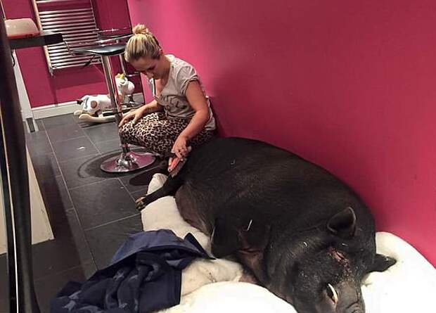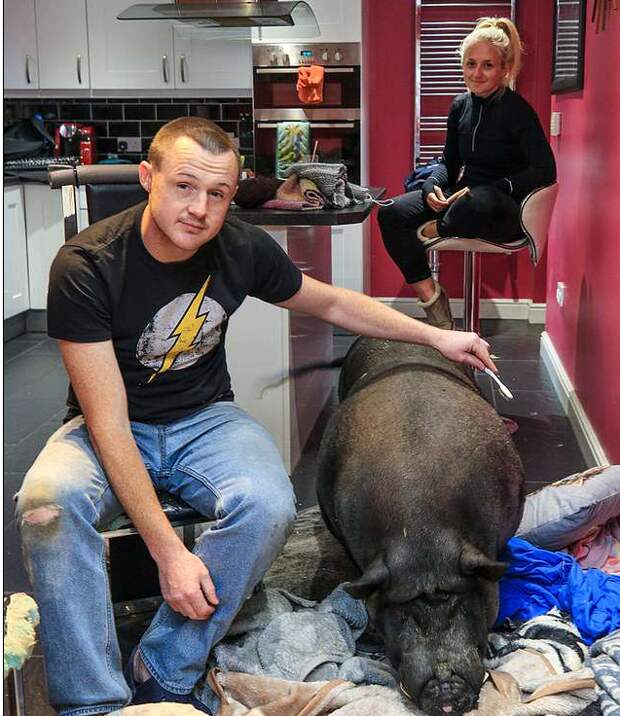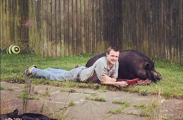 Свинья досталась британцу от бывшей девушки. Жена Лии Джоанна рассказала, что ее сердце растрогала та нежность, с которой Лии заботился о своем многокилограммовом друге.