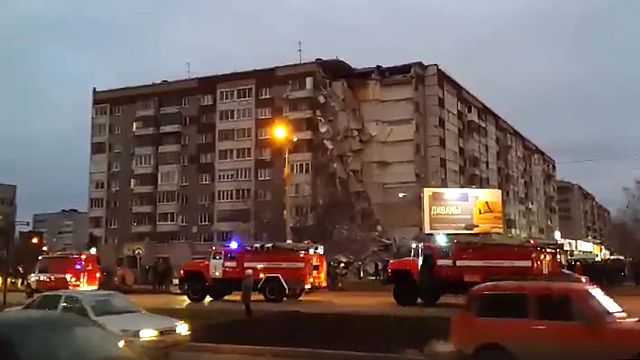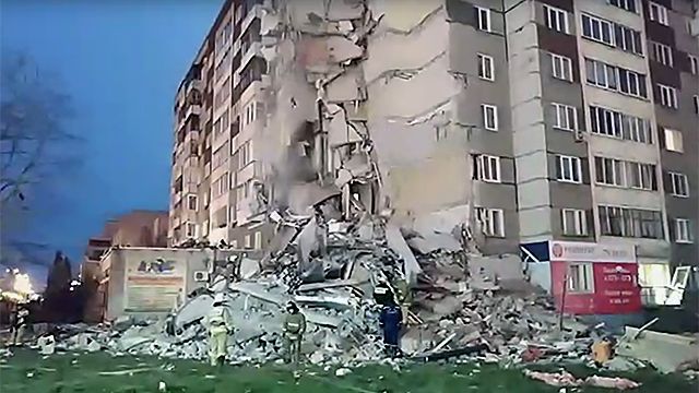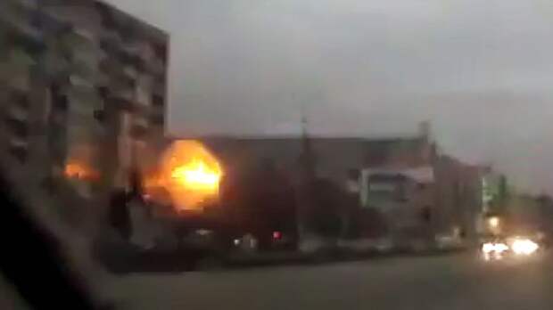 Камера сняла огненную вспышку в момент обрушения секции дома в Ижевске.