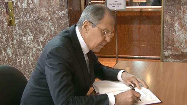 Министр иностранных дел России Сергей Лавров оставил запись в траурной книге в связи с кончиной постпреда РФ при ООН Виталия Чуркина. Книга находится в здании МИД.
