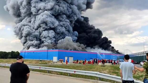 Площадь пожара на складе OZON в подмосковной Истре увеличилась до 35 тысяч квадратных метров.