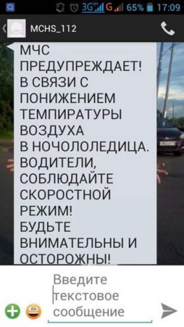 Жители Санкт-Петербурга получили сообщения от МЧС с огромным количеством орфографических ошибок. Так, вместо гололедицы ведомство предупредило о "ночололедице", а слово "температура" почему-то написало через "и".