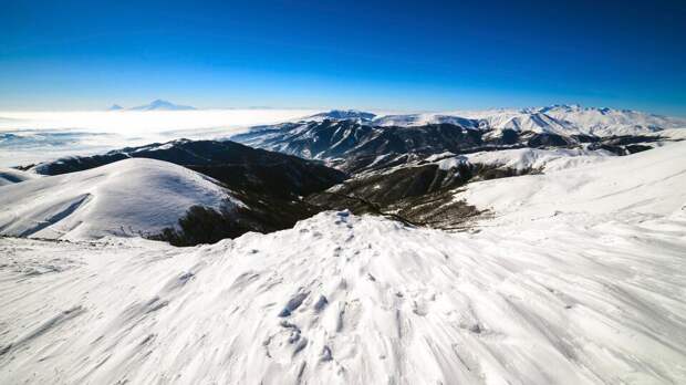 Альпинисты достигли вершины утром в субботу, а затем приступили к спуску по "ледниковому плато", как журналисты назвали северную сторону Арарата.