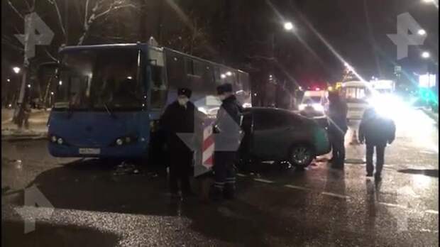 ДТП с участием частного автобуса и легковушки Lada произошло на МКАД. Транспортные средства столкнулись на съезде с трассы в районе Капотни.