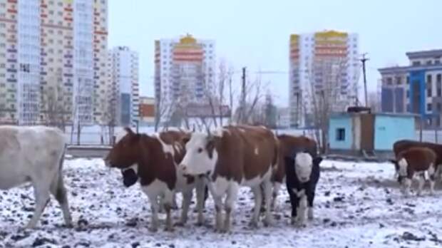 В теплое время года животные щипали траву с газонов, а зимой взять пищу им просто неоткуда. Местные жители сняли кадры, на которых туши исхудавших коров лежат прямо на улицах города.