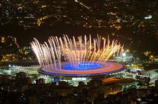 Зрители, которые собрались на стадионе "Маракана", стали свидетелями красочного шоу. В Рио тем временем разразился дождь, но зрителям заранее выдавались дождевики.