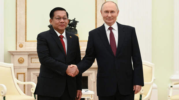 Президент России Владимир Путин обсудил с исполняющим обязанности президента Мьянмы Мин Аун Хлайном реализацию договоренностей между странами. Встреча прошла в Представительском кабинете Первого корпуса Кремля.