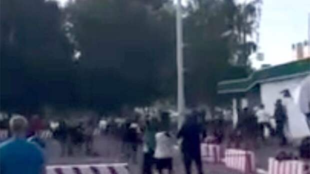 В Сети опубликованы кадры с места инцидента, на которых запечатлено, как хулиганы толпой избивают людей, провожающих призывников.