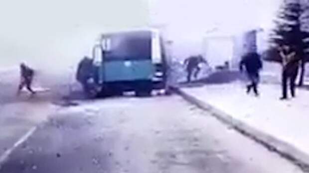 На записи видно, как автомобиль подъезжает к автобусу, стоящему на остановке, и взрывается. Возникает огромное облако дыма. Выжившие пассажиры выскакивают из автобуса.
