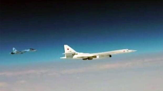 Российские Ту-160 и два Су-35 были обнаружены истребителями F-22 Raptor и самолетом дальнего радиолокационного обнаружения E-3, сообщает РИА Новости.