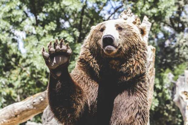 Если медведь находится уже рядом, нужно сохранять спокойствие и отпугнуть его звоном металлических предметов и громким криком. Рекомендуется не смотреть зверю в глаза и показывать зубы.