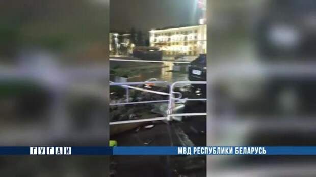 "Иномарка на скорости ехала по проспекту Независимости со стороны улицы Янки Купалы в направлении площади Победы. На кольце водитель не остановился, наехал на бордюр, после чего оказался на ступенях монумента, врезался в ограждение и вылетел на обратную сторону кольца", - цитирует агентство "РИА Новости" заявление МВД Белоруссии.