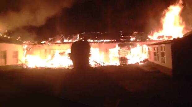 В Сети появилось видео горящей школы в Дагестане, которую подожгли боевики. На кадрах ролика видно, как пламя, охватившее здание, пожирает образовательное учреждение.
