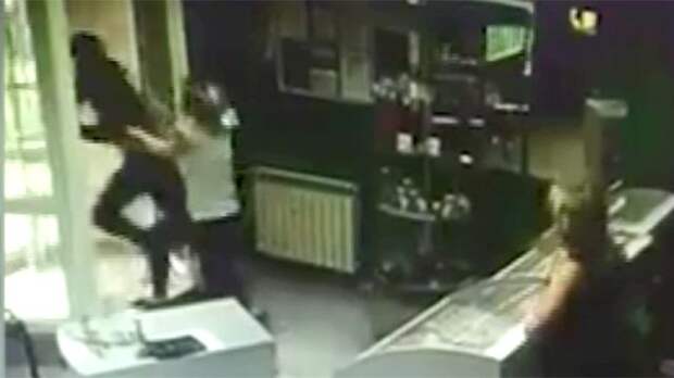 Ловкий прыжок. Но кассир успевает вцепиться в налетчика. Он бьет по лицу хрупкую девушку и скрывается с места.Судя по всему, даме серьезно досталось. Встать с пола получается только при помощи коллег. Полицейские заверили - торопыга точно попадет за решетку.