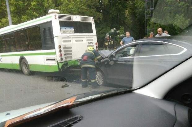 Инцидент произошёл в Южном Тушине. Автомобиль "Форд Мондео" рядом с остановкой сбил двух пешеходов, в том числе ребенка, а затем зацепил рейсовый автобус.