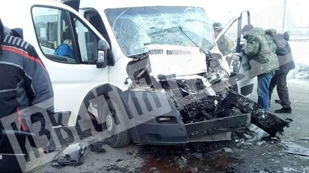 Пассажирский автобус попал в ДТП в Чебоксарах. По предварительным данным, пострадали 5 человек.