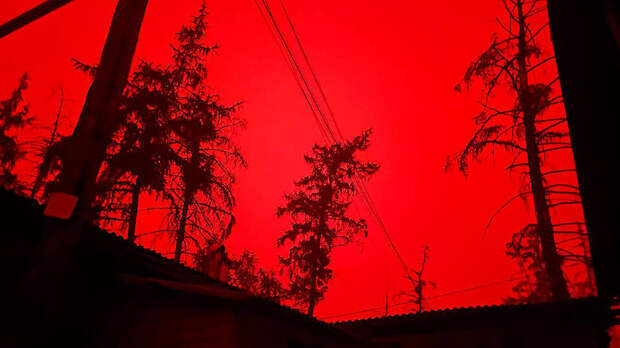 Там прогремело несколько взрывов и начался пожар, из-за чего небо окрасилось в красный цвет.