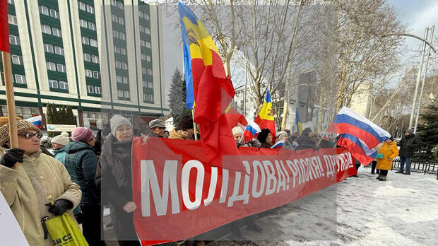 "Молдова, Россия, дружба!" – скандируют митингующие.