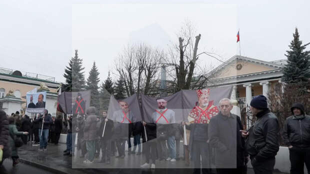 Более 300 человек собрались у посольства Армении в Москве на митинг против задержания священнослужителей Армянской Апостольской церкви и бизнесмена Самвела Карапетяна в республике. Об этом 11 декабря сообщает РЕН ТВ.