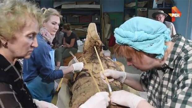 Как говорится в пресс-релизе госкорпорации "Ростех", в одной из могил специалисты смогли обнаружить уникальную мумию: захоронение сочетало в себе как римские, так и древнеегипетские элементы погребальных обрядов.Мумия лежала на матрасе и подушке с гобеленными вставками, была одета в несколько туник, а поверх тела было накинуто покрывало.