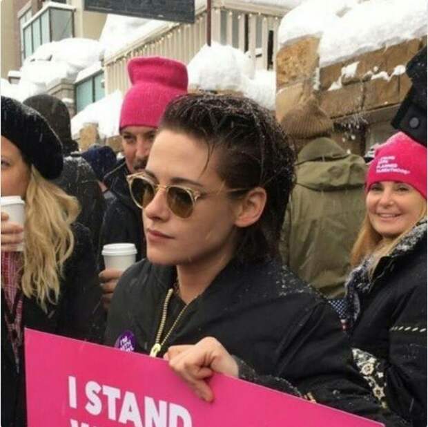 В социальных сетях обсуждают снимок с женского марша, на котором рядом с актрисой Кристен Стюарт стоит "двойник" Лукашенко.