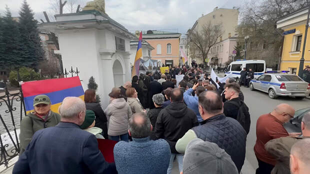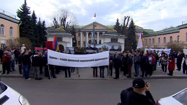 Акция протеста в поддержку Армянской апостольской церкви прошла 1 апреля у здания посольства Еревана. Участники митинга осудили давление премьер-министра республики Никола Пашиняна на католикоса Гарегина II.