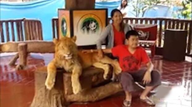 Молодой лев подвергся издевательствам в Таманском сафари-парке Индонезии ради того, чтобы туристы могли получить фото с хищником.