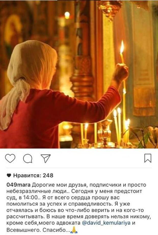 Стритрейсерша Мара Багдасарян попросила подписчиков в Instagram молиться за нее. Мара, по ее словам, переживает перед новым судом.