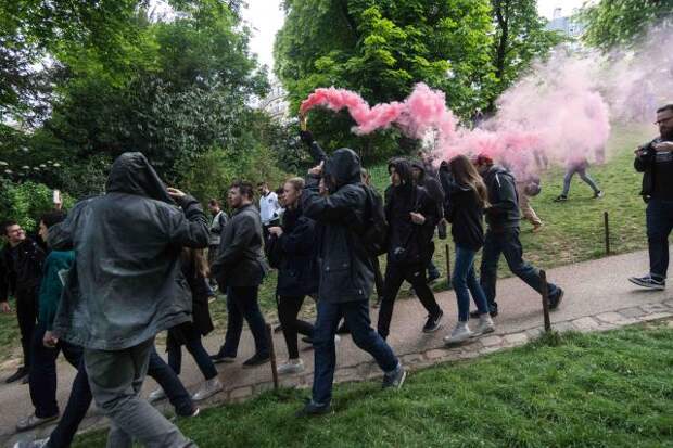 На улицах Парижа второй день продолжают беспорядки. Участники акции выступают против лидера партии "Национальный фронт" Марин Ле Пен.