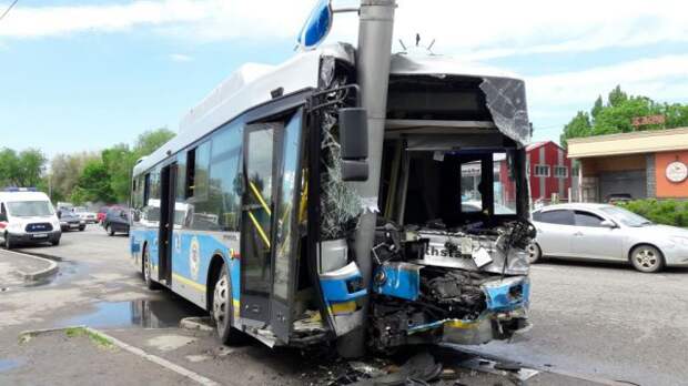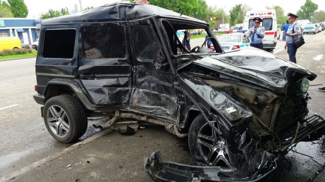 В Алма-Ате пассажирский автобус протаранил Gelandewagen. Авария произошла на улице Райымбека, не доезжая до улицы Тлендиева.