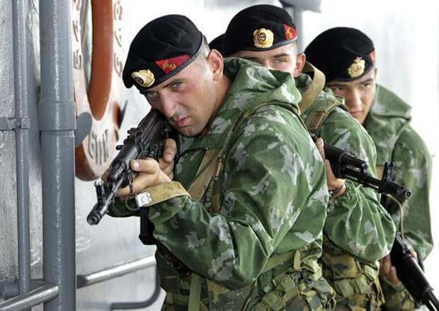Подразделения морской пехоты Каспийской флотилии в рамках проведения внезапной проверки боевой готовности провели учения по поиску и уничтожению условных незаконных вооруженных формирований на горном полигоне "Аданак" в Дагестане.