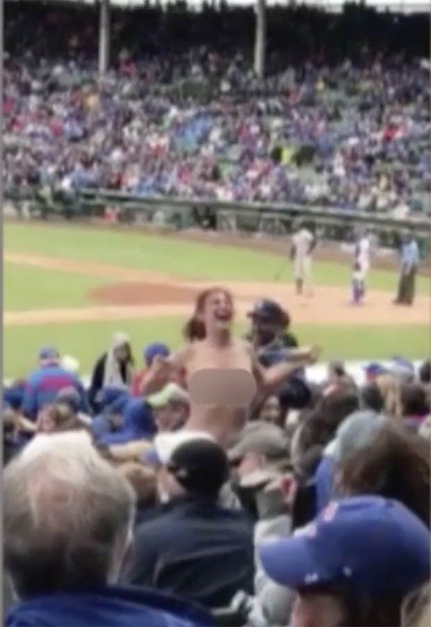 В Сети появилось видео того, как девушка снимает лифчик и оголяет грудь посреди переполненного стадиона на бейсбольном матче, чтобы подбодрить болельщиков своей любимой команды.