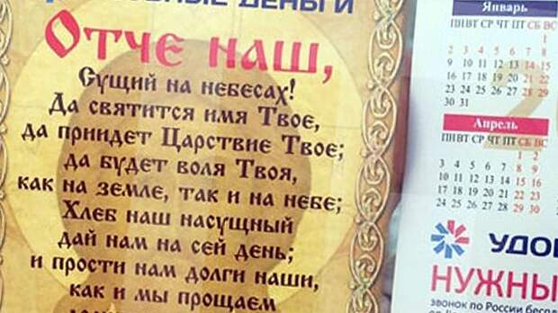 "В рекламе, напечатанной на карманном календаре, наряду с информацией "Удобные деньги. Нужны наличные? Звонок по России бесплатный…" присутствовали текст молитвы "Отче наш" и образ Иисуса Христа. Данная реклама распространялась в офисах микрофинансовой организации "Удобные деньги", — говорится в сообщении ФАС.