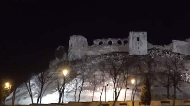 Эта семья, можно сказать, и не пострадала в результате землетрясения. Даже их дети не кажутся напуганными. Но красноречивое свидетельство опасности прямо перед окнами их лавки. Старинная крепость Газиантепа, основная достопримечательность города, сильно пострадала.
