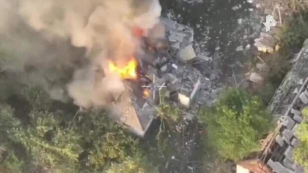 Пункт управления дронами ВСУ находился в одном из разрушенных зданий. Там же боевики обустроили склад с боеприпасами – они усилили взрыв после сброса ВОП с "Молнии-2".