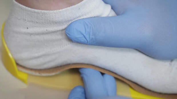 "Вот это у меня заготовка, она плоская, она тонкая, если ее нагреть до температуры порядка 500 градусов, мы сможем придать ей форму такую, как мы захотим. Готовый продукт выглядит примерно вот так. Мы здесь видим продольный свод. Мы видим поперечный свод", – показал кандидат медицинских наук, руководитель травматологического отделения сети медклиник Андрей Дедюрин.