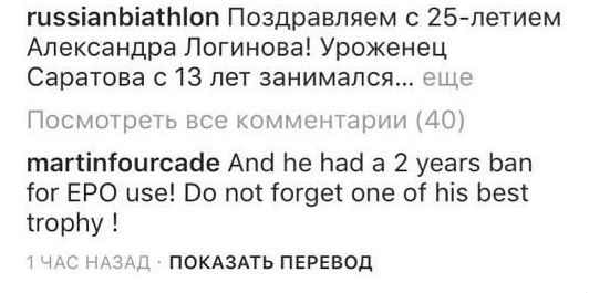 В дальнейшем француз переосмыслил свое решение и удалил саркастичный комментарий в адрес российского биатлониста.