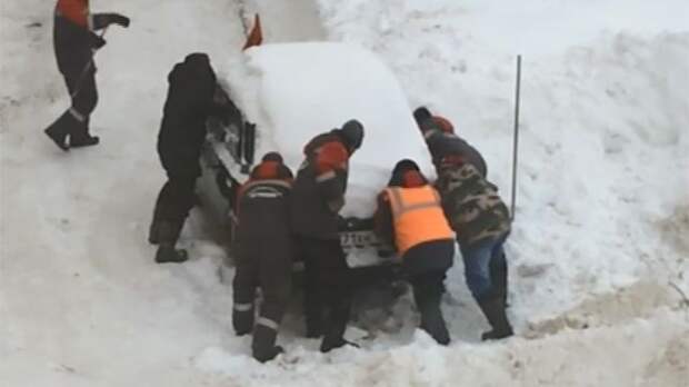 Целая серия коммунальных скандалов в Уфе. На одной из записей очевидцев запечатлено, как мужчины расчищают снег, но на пути появляется препятствие - отечественная легковушка. Недолго думая, дворники начинают расшатывать ее, пытаясь таким образом сдвинуть с места.