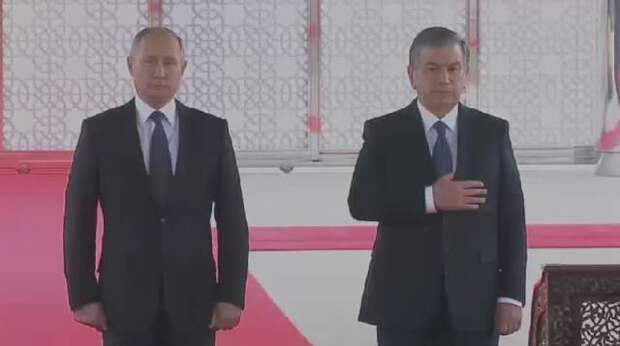 При звуках российского гимна Шавкат Мирзиёев приложил руку к сердцу, в знак уважения. Визит Путина здесь действительно большое событие. Гостеприимные узбеки не скупятся на приветственные слова в адрес российского лидера. По всему Ташкенту развешены флаги, которые каждые несколько минут поправляют. От этих переговоров ждут прорыва в торгово-экономических отношениях.