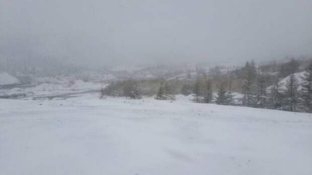Магадан залило потоками грязной воды после продолжительных дождей. После этого в Магаданской области выпал снег.