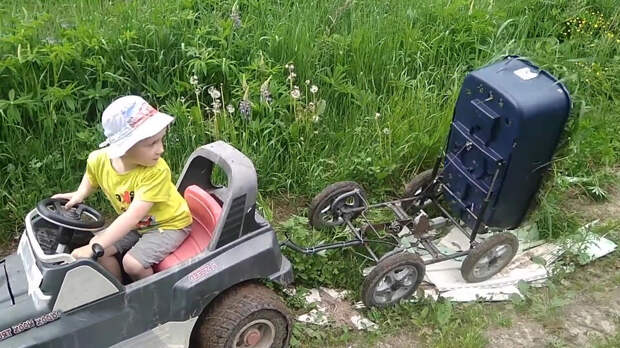 Дети вырастают и пересаживаются из детских колясок в детские электрические автомобили. Но коляска может получить вторую жизнь в умелых руках. Из нее можно даже смастерить настоящую газонокосилку! Даже если коляска совсем пришла в негодность, не забывайте, что у нее настоящие дутые колеса. На таком ходу можно построить любое транспортное средство для ребенка. Например, детский багги. Конечно, для этого еще понадобятся золотые руки, доброе сердце и немного свободного времени.