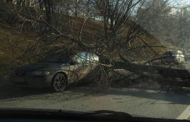 В результате падения движение по дороге было парализовано. На кадрах, сделанных очевидцами, видно, что в инциденте пострадал один из автомобилей.