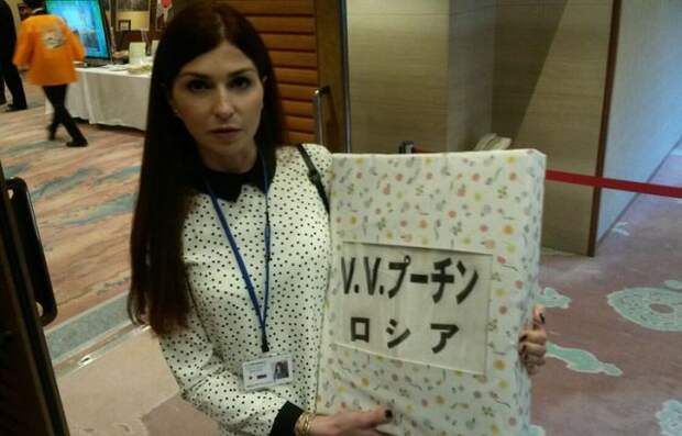 По ее словам, она решила сделать подарок российскому лидеру, когда узнала о его пребывании в Нагато. Именное кимоно она заказала в клубе, в котором ее сын занимается дзюдо. На белоснежной ткани Ангелина вышила японской азбукой катакана надпись: "В.В. Путин – Россия".