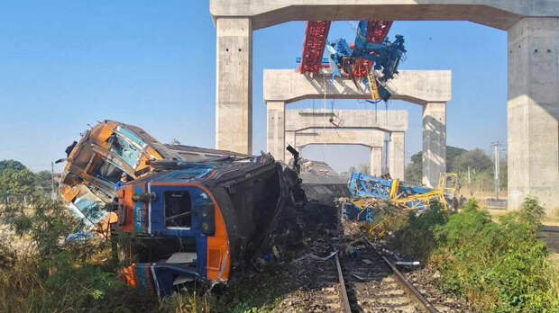 REUTERS/Ministry of Transport 22 человека погибли и 55 пострадали при обрушении строительного крана на пассажирский поезд в Таиланде, сообщает газета Khaosod ссылаясь на местных правоохранителей.