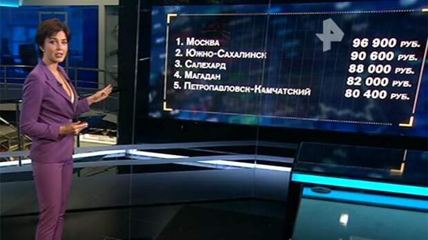 В пяти городах страны средние зарплаты больше 80 тысяч рублей — это Москва, Южно-Сахалинск, Салехард, Магадан и Петропавловск-Камчатский.