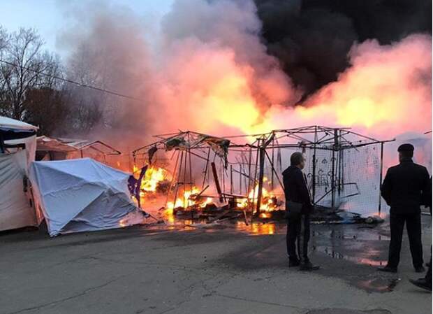 В Москве произошел пожар на рынке в районе Коптево.