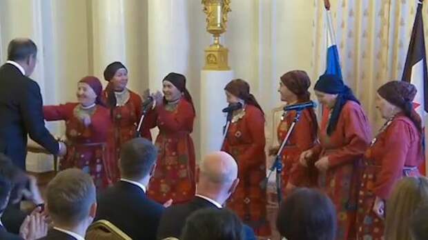 После выступления участницы коллектива принялись обниматься с Сергеем Лавровым."Обнимайтесь, бабушки, когда еще обнимите его! Работа у него сложная, серьезная! Обнимите, подарите наше тепло деревенское", — сказала одна из них.