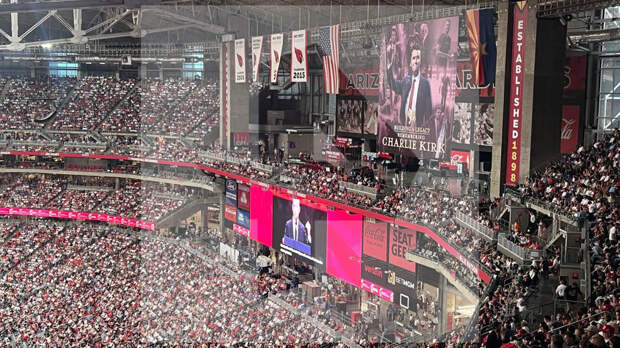 Сам президент Дональд Трамп выступил перед публикой за пуленепробиваемым стеклом. Подробности – в сюжете корреспондента РЕН ТВ Николая Мастерова.Так много людей здесь не было даже на матчах и концертах мировых звезд. Гигантский стадион State Farm в Аризоне превратился в место для траурной процессии.