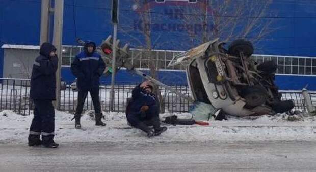 В Красноярске произошло ДТП с участием УАЗ и "Лады Калины". Как сообщает ngs24.ru, УАЗ перевернулся на скользкой дороге и снес светофор. Инцидент произошел на улице Пограничников.