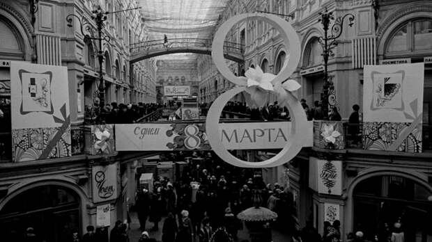 В 1921 году кураторы 2-й Коммунистической женской конференции установили Международный женский день 8 марта в знак признательности перед участницами манифестаций. К концу 1930-х в фокусе праздника оказались сильные женщины, добившиеся успехов в "мужских профессиях". С 1966 года 8 марта в СССР становится нерабочим днем. Женский день постепенно потерял индустриальную направленность и приобрел более традиционный, домашний стиль.
