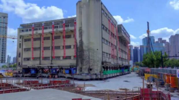 В китайском Шанхае здание начальной школы подняли с земли и перенесли с использованием новой технологии, получившей название "Шагающая машина", сообщает телеканал CNN.